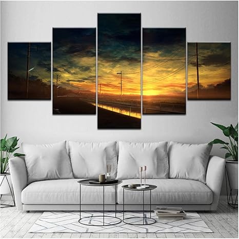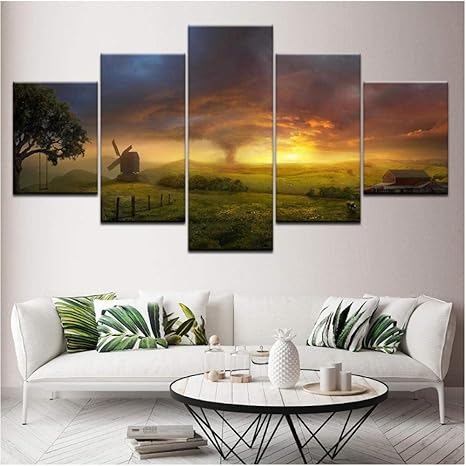 Nnngt Pintura Em Tela Pastagem E Pôr Do Sol Paisagem 5 Peças Pintura De Parede Arte Cópia Modular Do Poster Dos Papéis De Parede Para Sala De Estar Decoração-10Cmx15/20/25Cm | Amazon.com.br